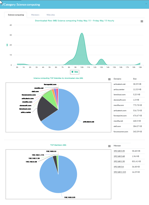 With the query on statistics you will be able to extract graphs, charts, tables of who is using what and when it using some...The Statistics feature is available with an Artica Enterprise Edition License